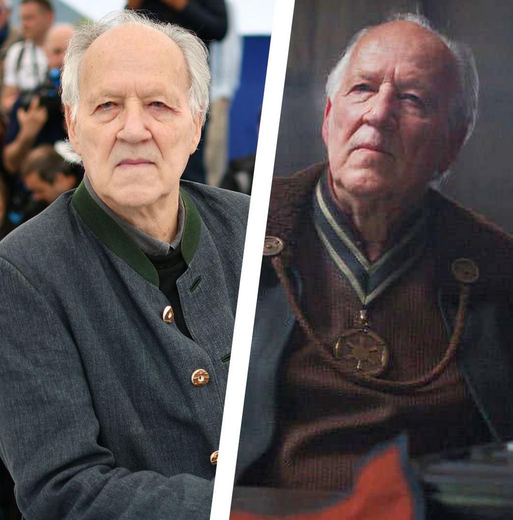 Werner Herzog as The Client Werner Herzog, who says hes never seen a Star Wars movie, is not primarily known for his acting. Sure, he played a creepy home owner in a very memorable Parks and Recreation appearance, but hes primarily known for the movies hes directed, like the heart-gutting documentary Grizzly Man and the unmistakable Aguirre: The Wrath of God. Here, Herzog is playing some sort of gangster called 'The Client. Bounty hunting is a complicated profession, he says in one of The Mandalorians first trailers ; well see just how complicated when the show kicks off next week. Disney