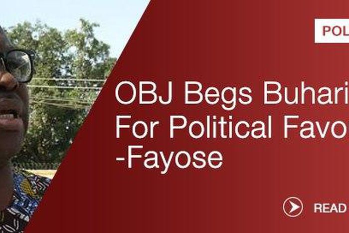 The Governor of Ekiti state, Ayo Fayose has taken a swipe at former President Olusegun Obasanjo calling him an expired politician who always goes to Aso-Rock to beg President Buhari for political favours.