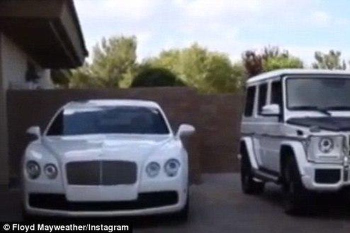 The undefeated boxing champ posted a video of his white car collection on Instagram, to show the world what he spends his money on.