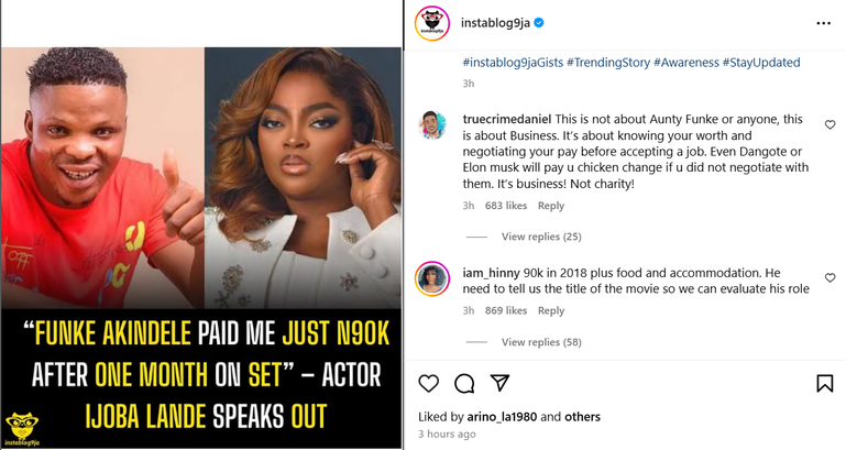 Some commenters suggested that Lande’s lack of initial negotiation contributed to the outcome, while others criticised what they see as a broader issue of underpayment in Nollywood, especially for up-and-coming talents.