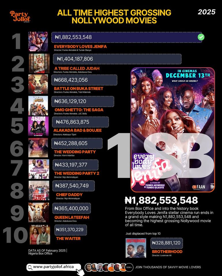 Funke Akindele’s Everybody Loves Jenifa Breaks records with a staggering ₦1.88 Billion box office gross.