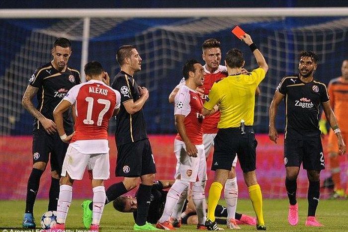 Either from a challenge on a colleague, attack on a referee or some other un welcomed antics in football.