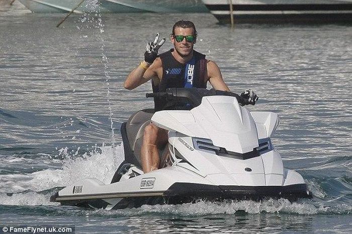 The Welsh player was spotted in Marbella over the weekend on a jet-ski for a spin.