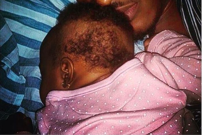 Gideon who welcomed his little baby girl in March, posted a picture of him and his daughter sleeping yesterday, May 4, 2015.