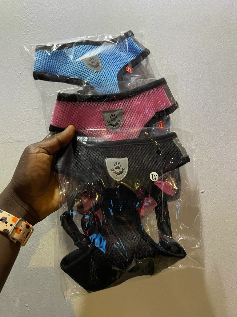 This Pet harness with matching rope offers comfort with its breathable mesh design and secure fit with adjustable straps. It's easy to wear with quick-release buckles, durable due to its high-quality materials, and provides chest support to avoid neck strain. Some models include reflective elements for visibility, and they come with a matching rope. Available in various sizes, it's ideal for outdoor activities.