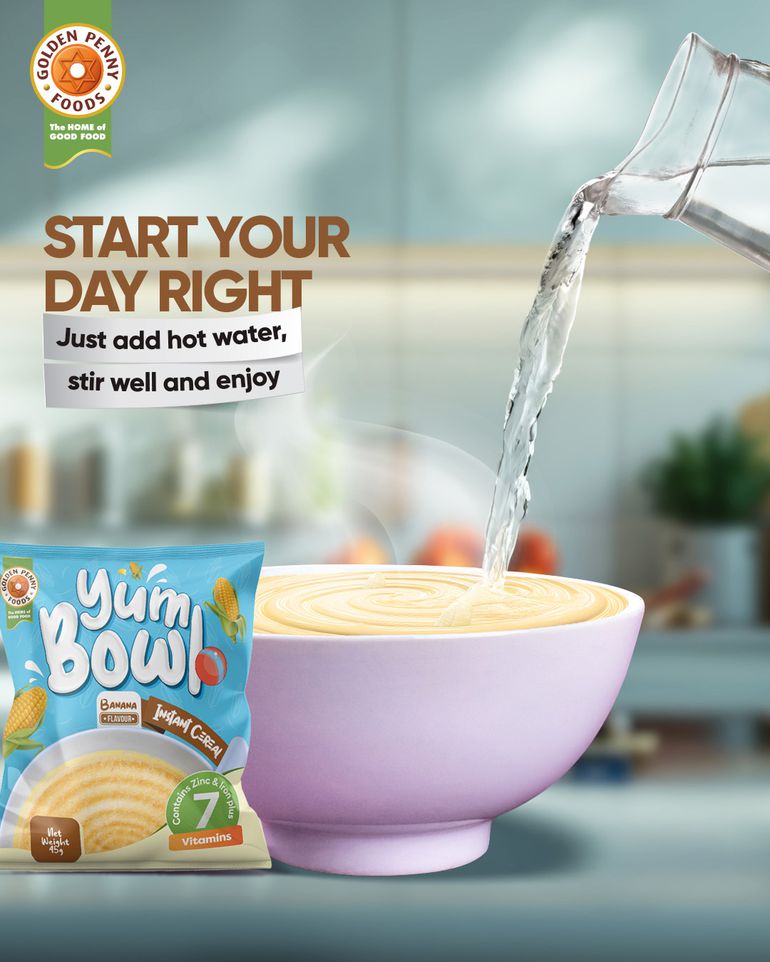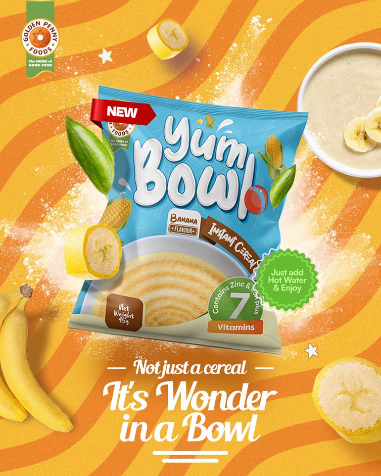 The GoldenPenny Yumbowl Cereal is available in a 400g and 45g pack. You can grab a pack at any retail outlet near you.