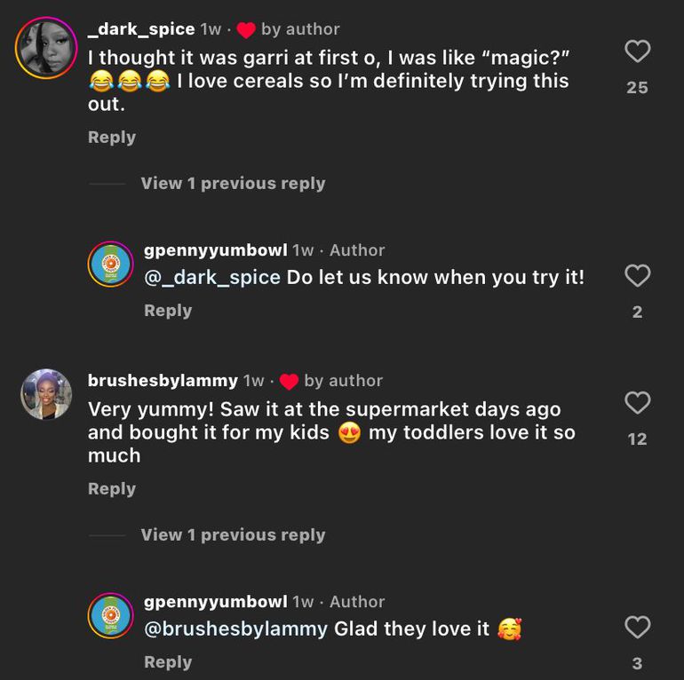 Blog features and Influencer engagements pushed for more visibility for Yumbowl cereal, influencer Nicole Chikwe (premium Pie) and her kids put YumBowl to the test in a video on Instagram and had empty plates and smiley faces at the end. Innovative Chef, omoyecooks was a little more indulgent trying out all three flavors at once with some extra milk. Yum!