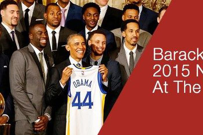 The team presented Obama with the obligatory No. 44 team jersey, as he is the nation's 44th president and Warriors coach Steve Kerr invited him to join the team as a free agent at the end of the year.