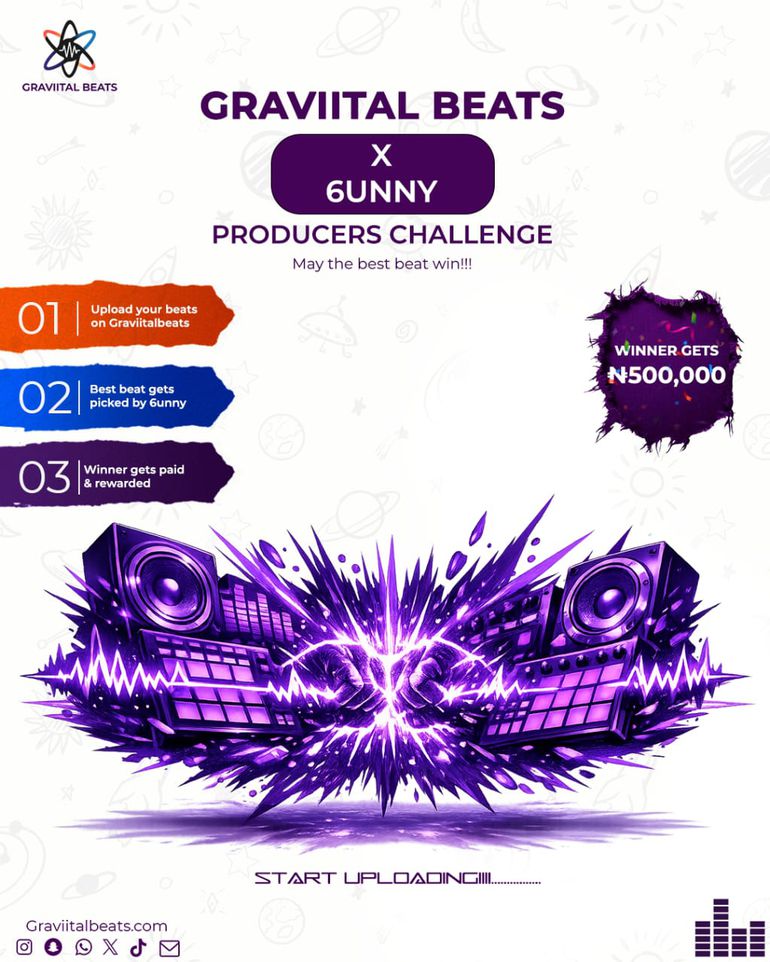 One producer will have their beat officially purchased from the Graviitalbeats store, earning a ₦500,000 cash prize alongside additional studio gift items. The winning beat will become part of 6unny’s upcoming EP — a real placement and not hypothetical.