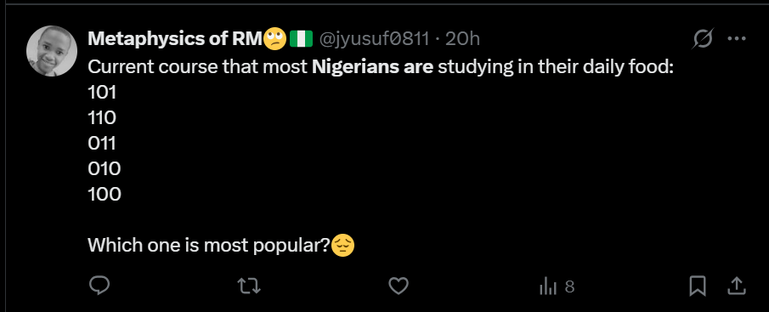 Many Nigerians are familiar with 001 (one meal a day); this isn’t just Davido’s title; it represents the reality of eating patterns in this tough economy. For us, food is no longer just about taste; it’s a daily battle of budgeting and survival.