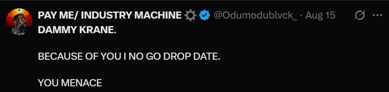 Dammy Krane's notoriety has not gone unnoticed among artists who are now forced to plead with him to kindly spare their release dates and new materials from his scheming.