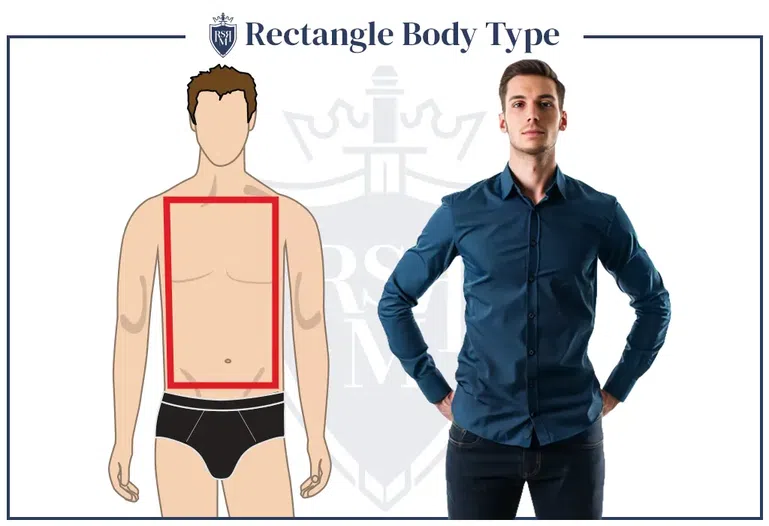 Men with a rectangular body shape struggle with looking too straight and boxy. Your goal? Creating the illusion of a broader chest and shoulders.
