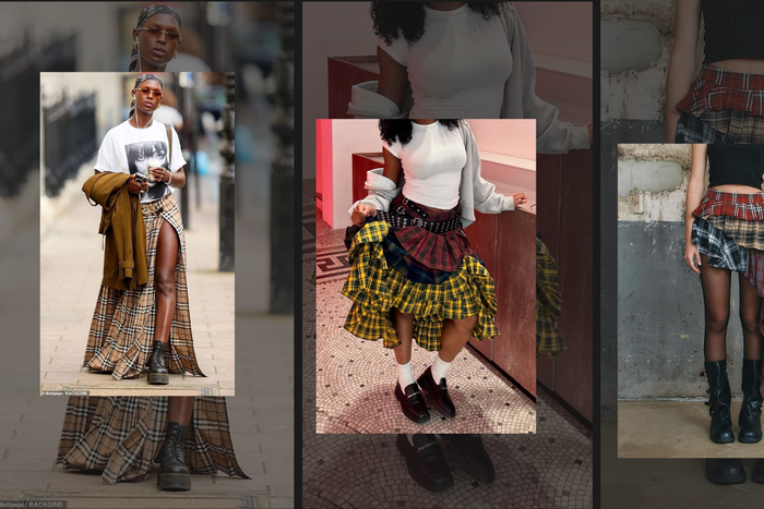 Yes, you read that right, skirt-over-trousers are officially back, and plaid skirts make this trend even better because the print adds dimension. Pair a mini plaid skirt over straight-leg jeans for a Y2K vibe that feels modern.