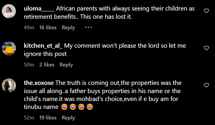 The truth is coming out,the properties was the issue all along..a father buys properties in his name or the child’s name.it was mohbad’s choice,even if e buy am for tinubu name