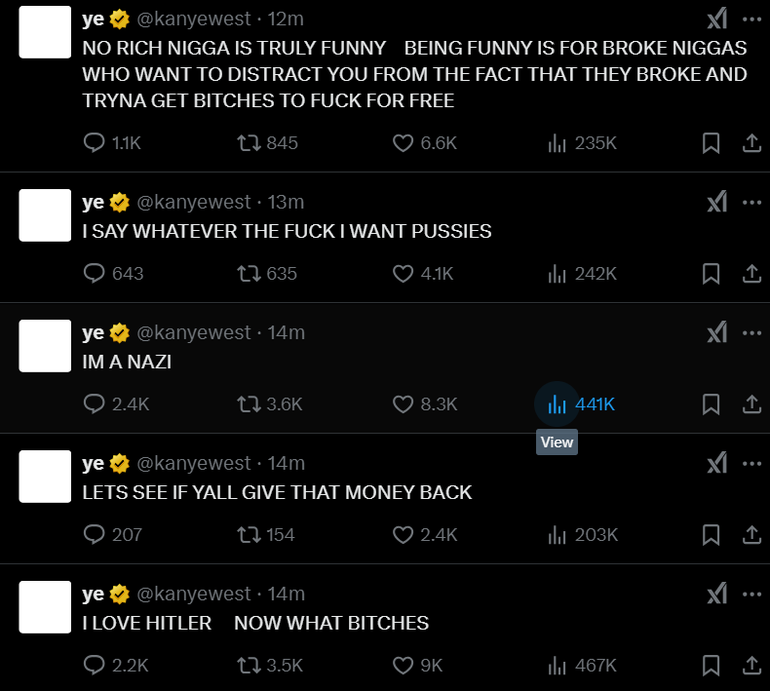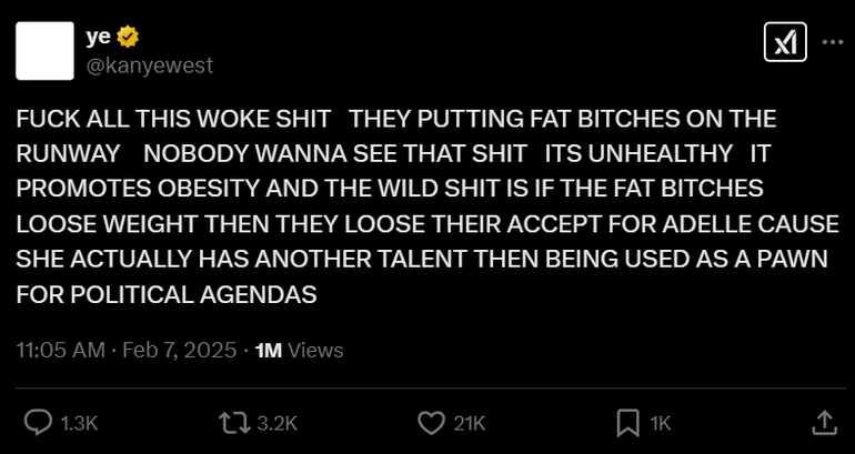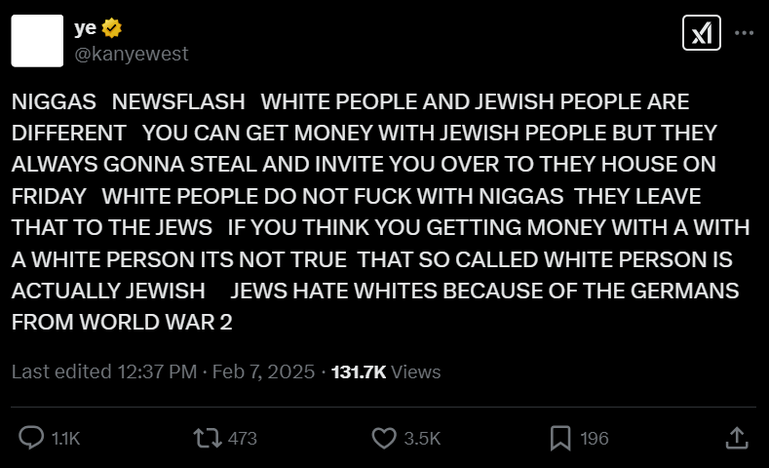 On February 7, 2025, Kanye took to X (Formerly known as Twitter) in a series of multiple tweets, asserting that all stereotypes are true. The rapper posted well over 20 posts in under ten minutes, detailing somewhat offensive statements about black, gay and jewish people.