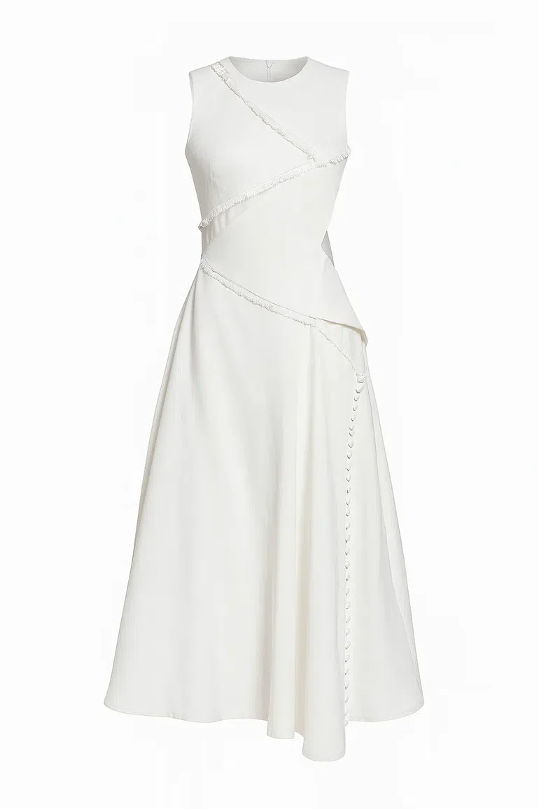 The Lori Dress, with its clean and crisp design with edgy cutouts and frayed ends, reinvents the white midi with just enough unexpected detail. It's structured yet breathable, casual but still dressed-up, and an outfit that doesn’t need much else to stand out. Absolutely complete in itself. Try pairing it with strappy heels and you're good to go.