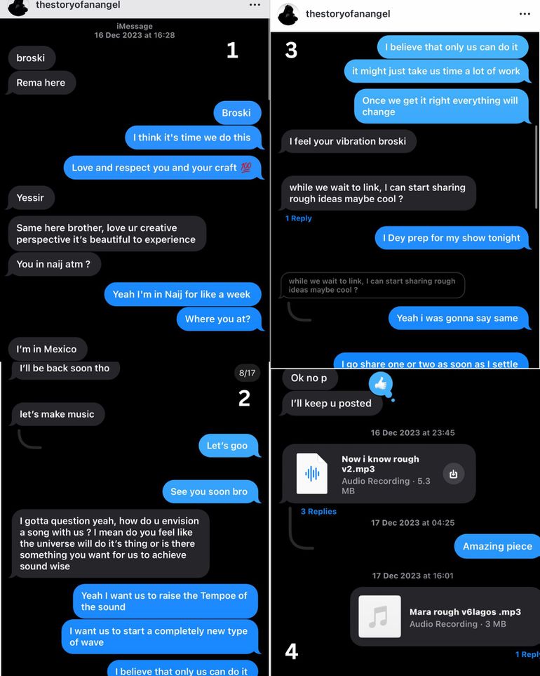 iMessage chats reveals Rema as the alleged artist who stole Omah Lay's album idea