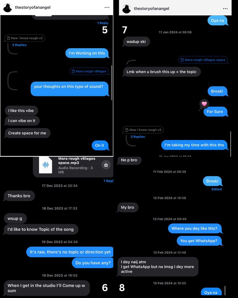 In return, Omah Lay sent him a file titled 'mara rough', which he stated to be the song he was working on at the time.
