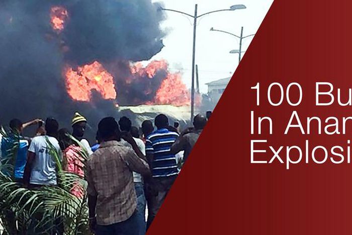 About 100 persons have been reported dead in Anambra State after being burnt in a gas plant explosion.