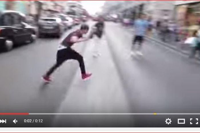 Well, this oyinbo guy defies everything we have being taught about crossing a busy road by launching himself into a running flip.