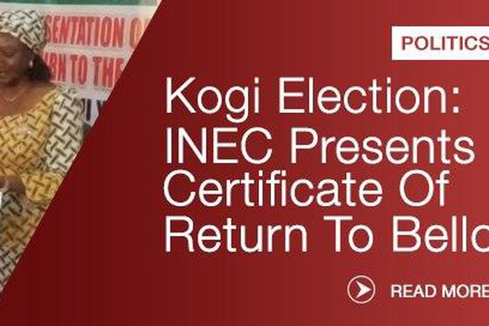 The representative of the INEC National Chairman, Professor Antonia Sibi, who presented the certificate to Bello, said INEC will continue to adhere to rules in organizing free, fair and credible poll.
