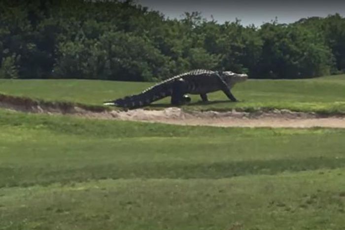 The group had been playing at a course in Palmetto when the alligator was spotted, as it sauntered towards a lake near the third hole.