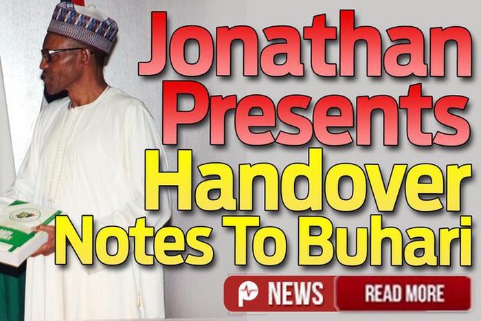 President Goodluck Jonathan, during a ceremony at the Aso chambers, State House in Abuja today, May 28, 2015, presented incoming president, Muhammadu Buhari, the handover notes for the inauguration ceremony as well as handover notes from the National Conference.