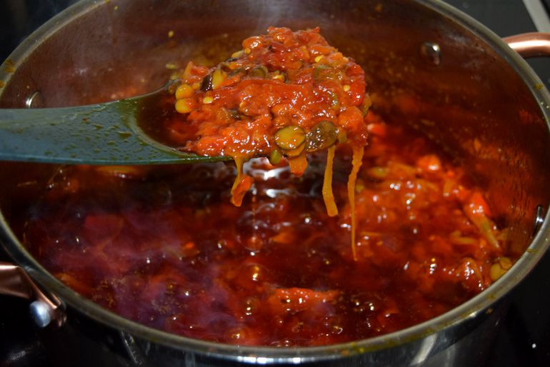 Boiling: The pods are boiled for several hours to soften the tough seed coats.