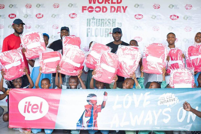 In partnership with the Lagos Food Bank Initiative (LFBI), itel brought smiles and hope to pupils of Divine Academy, St. James Academy, Primary School 1–3 in Kpite Community, and Divine Grace Schools and Model Primary School 1–3 in Bunu Community. The team distributed freshly cooked meals, along with branded school bags, mathematical sets, and water bottles to promote nourishment, learning, and well-being among young learners.