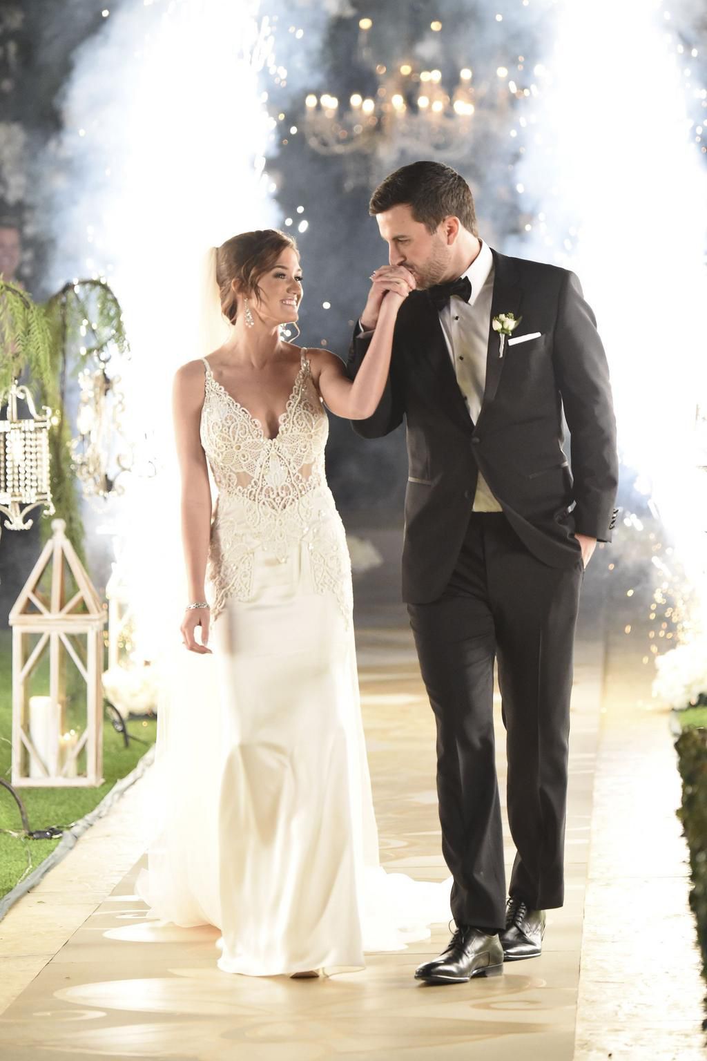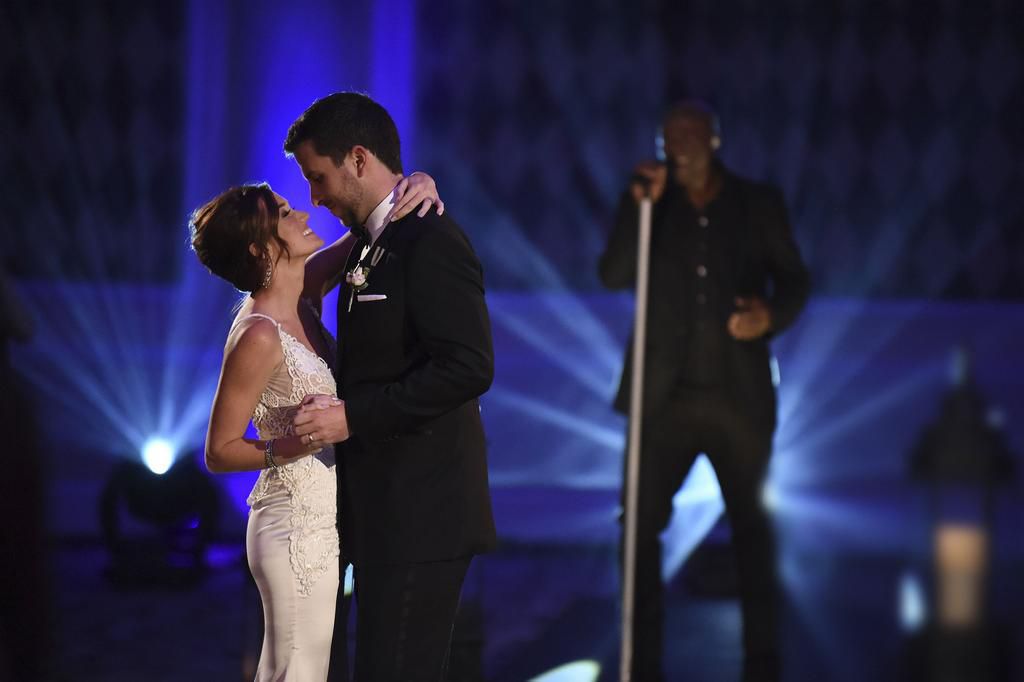 4) Things are looking a little better at the reception, though. Let's get the lows out of the way now. Glass says, "Tanner's looking numb," which isn't necessarily a bad thing, but she'd feel more confident if his expression was matching Jade's genuine smile. Otherwise, Glass thinks the newlyweds look "really in love here and totally connected," thanks to how closely their bodies are to each other's and the way Jade's fingers gently wrap around Tanner's neck to pull her man in even closer. Matt Petit - Getty Images