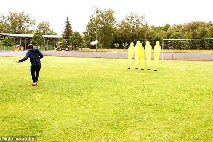 Juan Mata posted a video of himself scoring free-kicks while blindfolded