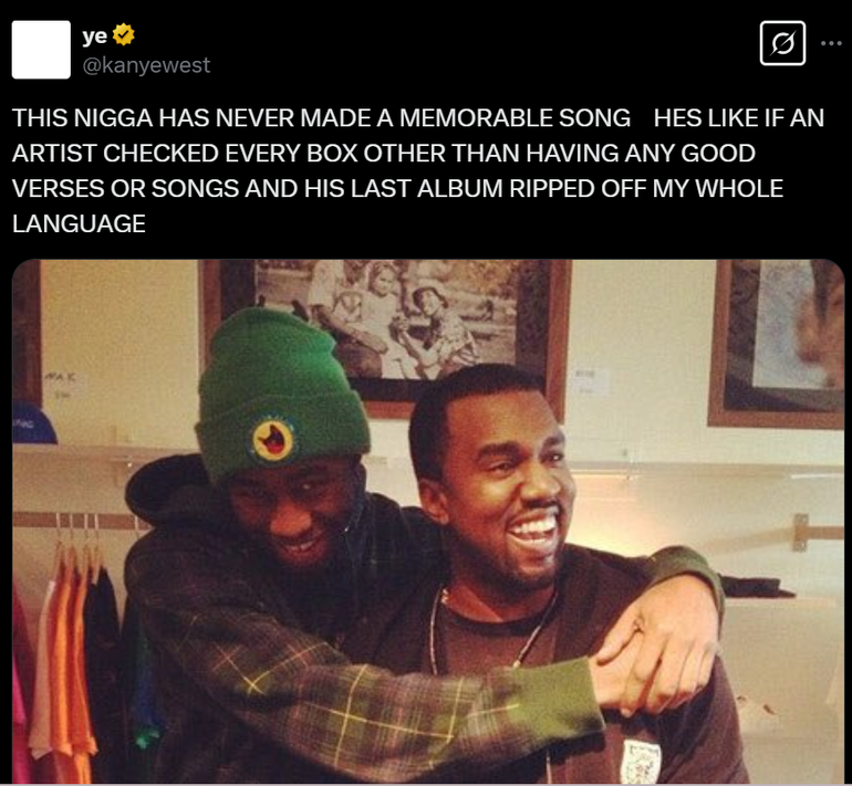 Kanye West aims dig at Tyler The Creator, says he has no good song