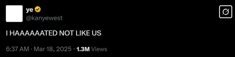 In a post on his X page, Kanye West revealed his strong dislike for Kendrick Lamar's hit record 'Not Like Us'.