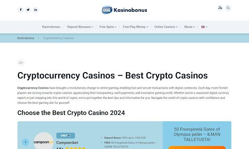 The leading Finnish casino portal Kasinobonus.ai, founded by Matti Slotte in 2023 and managed by KasinoBonus LLC, has published a report shedding light on the growing popularity of cryptocurrencies in the gambling industry.