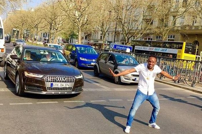 Pop singer KCee has taken his 'pullover' move to the streets of Berlin, Germany.