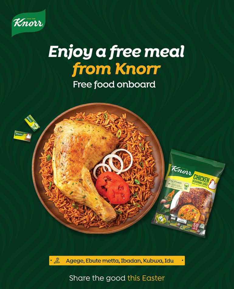 This Easter, from April 3 to 6, 2026, Nigeria’s leading seasoning brand, Knorr, will distribute free, nourishing meals in churches across Lagos, Oyo, Ogun, Enugu, Imo, Abia, Anambra, Edo states, and the federal capital, Abuja, as part of its ongoing Share the Good campaign.