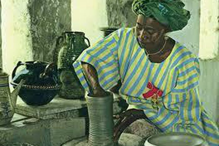She learned to make pottery as a child using the traditional method of coiling. She made large pots for use as water jars and cooking pots from coils of clay, beaten from the inside with a flat wooden paddle. They were decorated with incised geometric and stylised figurative patterns. Following the traditional African method, they were fired in a bonfire of dry vegetation