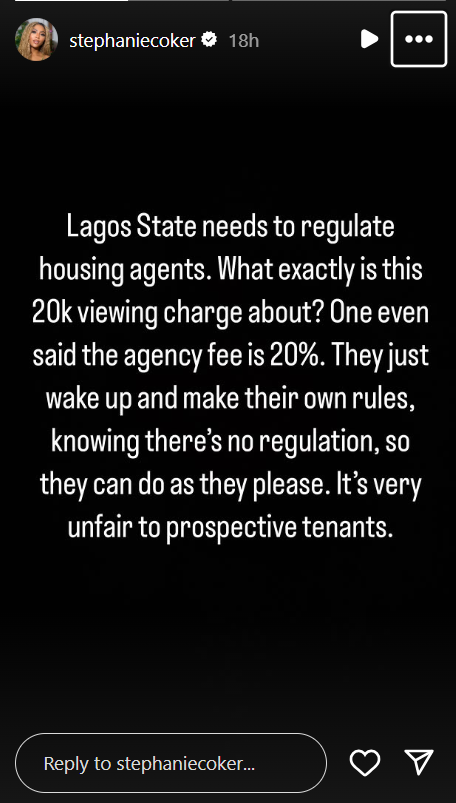 Popular media personality and entrepreneur Stephanie Coker has sparked a renewed conversation about the housing crisis in Lagos State after sharing her frustrating experience with real estate agents.