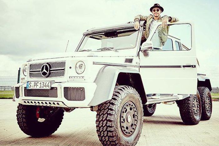 Just after winning the Italian Grand Priz on Sunday, September 6, Lewis Hamilton celebrated by posing with a Mercedes G63 AMG.