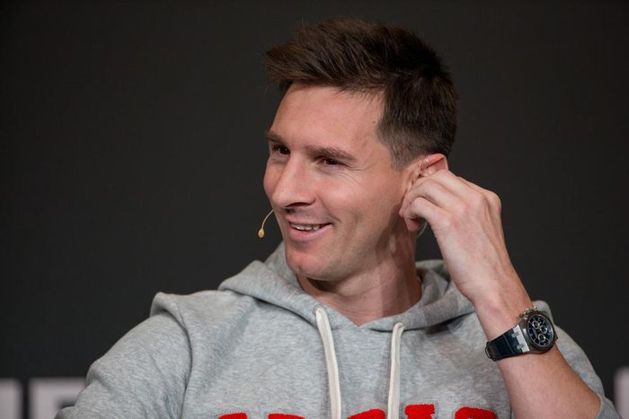 Messi was apparently in a good mood compared to when he lost his temper while playing in a Barcelona friendly with Roma where he headbutted .