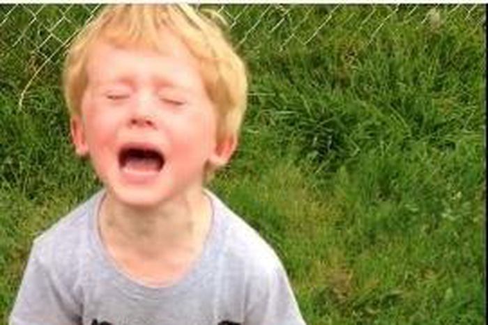 The video of a little boy having an epic rant after mistakenly stepping on dog poop has gone viral.