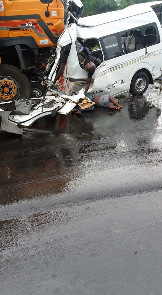 The vehicle, according to the Federal Roads Safety Corps (FRSC), was on its way to Abia State from Enugu State, when it had the head on collision with the trailer at Ofeme Junction on the Umuahia Road axis.