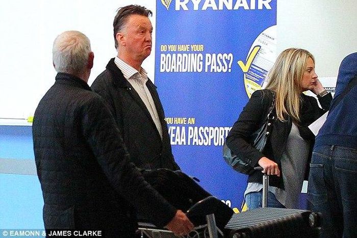 Louis van Gaal and his wife were pictured boarding a flight to Portugal were they share a holiday home