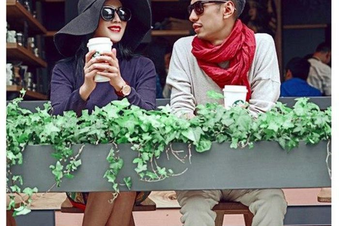 The photos see the couple in a coffee shop, an amusement park and driving in a sports car, in contrast to other photos that features them in a Tibetan village.