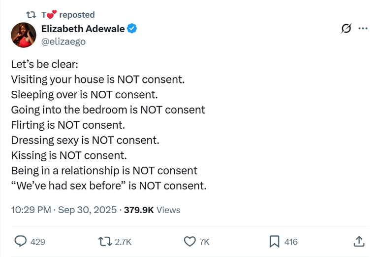 This incident highlights Nigeria’s urgent need to have a serious, nationwide conversation about consent, sexual harassment, and the culture of silence around gender-based violence.