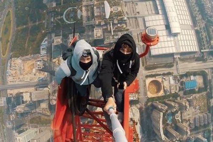 In the case of Vadim Makhorov and Vitaliy Raskalov, two daredevils in China, they illegally climbed to the top of a new financial centre in Shenzen, China to get their perfect selfie.