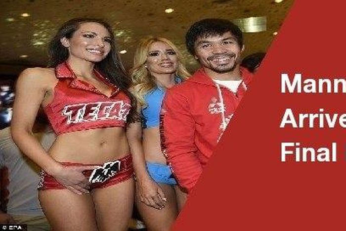The 37-year-old Filipino boxer arrived at the MGM Grand Tuesday, ahead of his third meeting with Bradley whom he defeated the Filipino thanks to a highly controversial split decision in June 2012.
