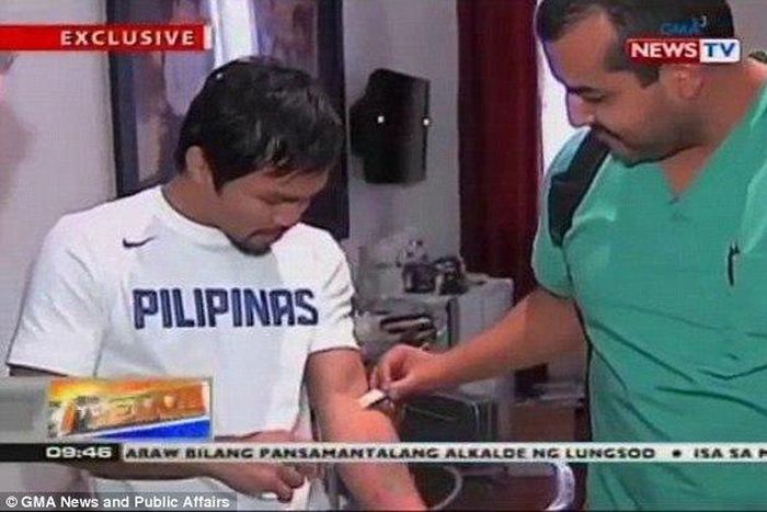 Manny Pacquiao was subjected to an impromptu drug test after Floyd Mayweather requested that an anti-doping examiner to test his rival.