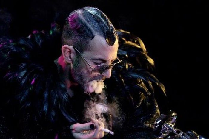 The models are equally entertaining: There's a witchy-looking Kendall Jenner, a seductive Susan Sarandon and even the designer himself smoking a cigarette against a motorcycle, dressed in his own designs (platform boots included) and exhibiting his utmost badass side.