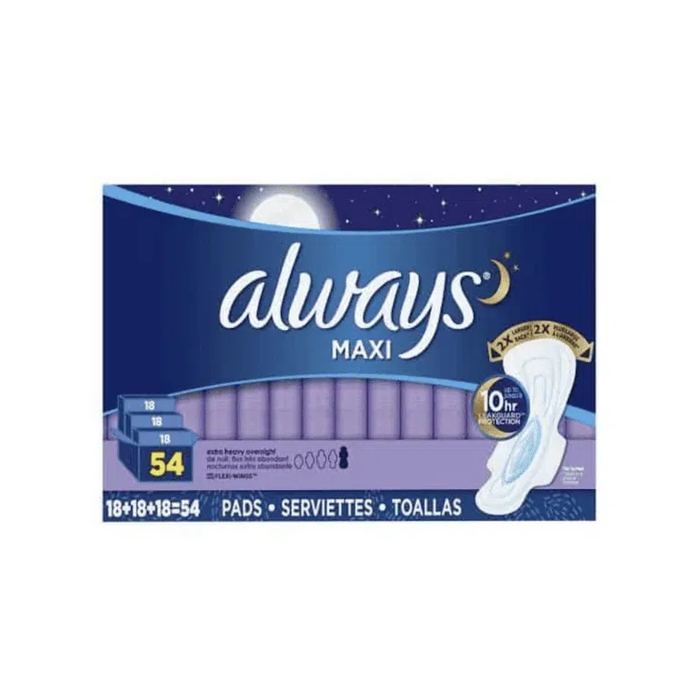 Always Maxi Extra Heavy Overnight Pads Unscented – 54 Count.
